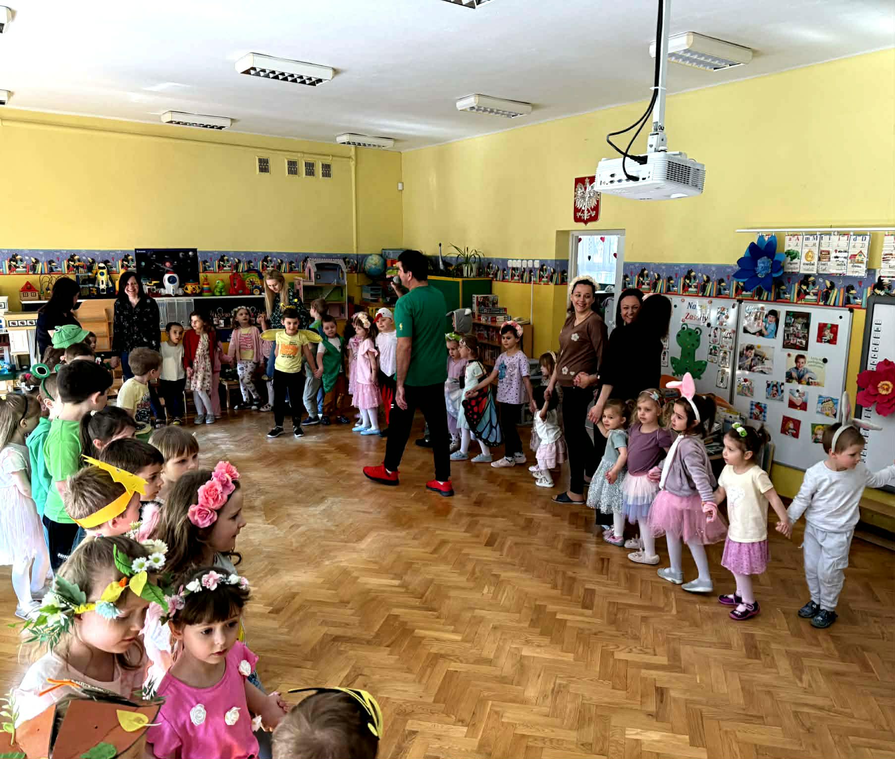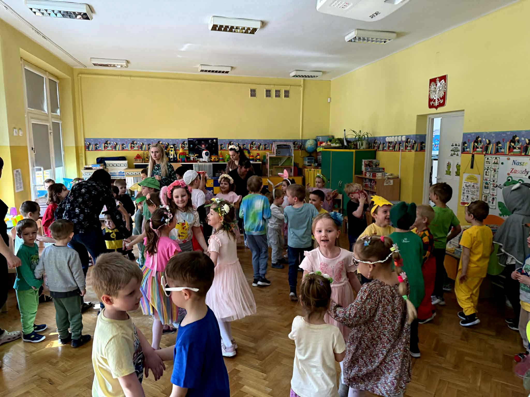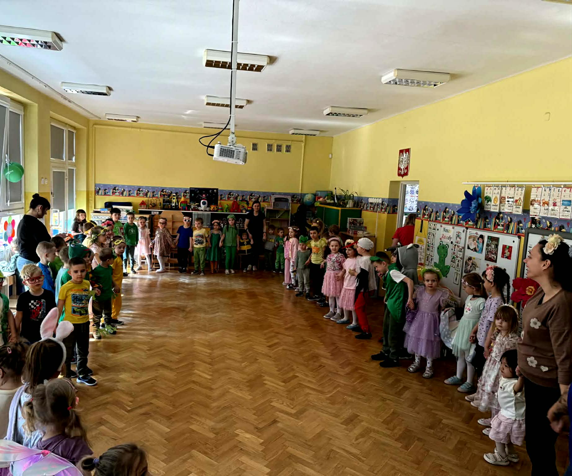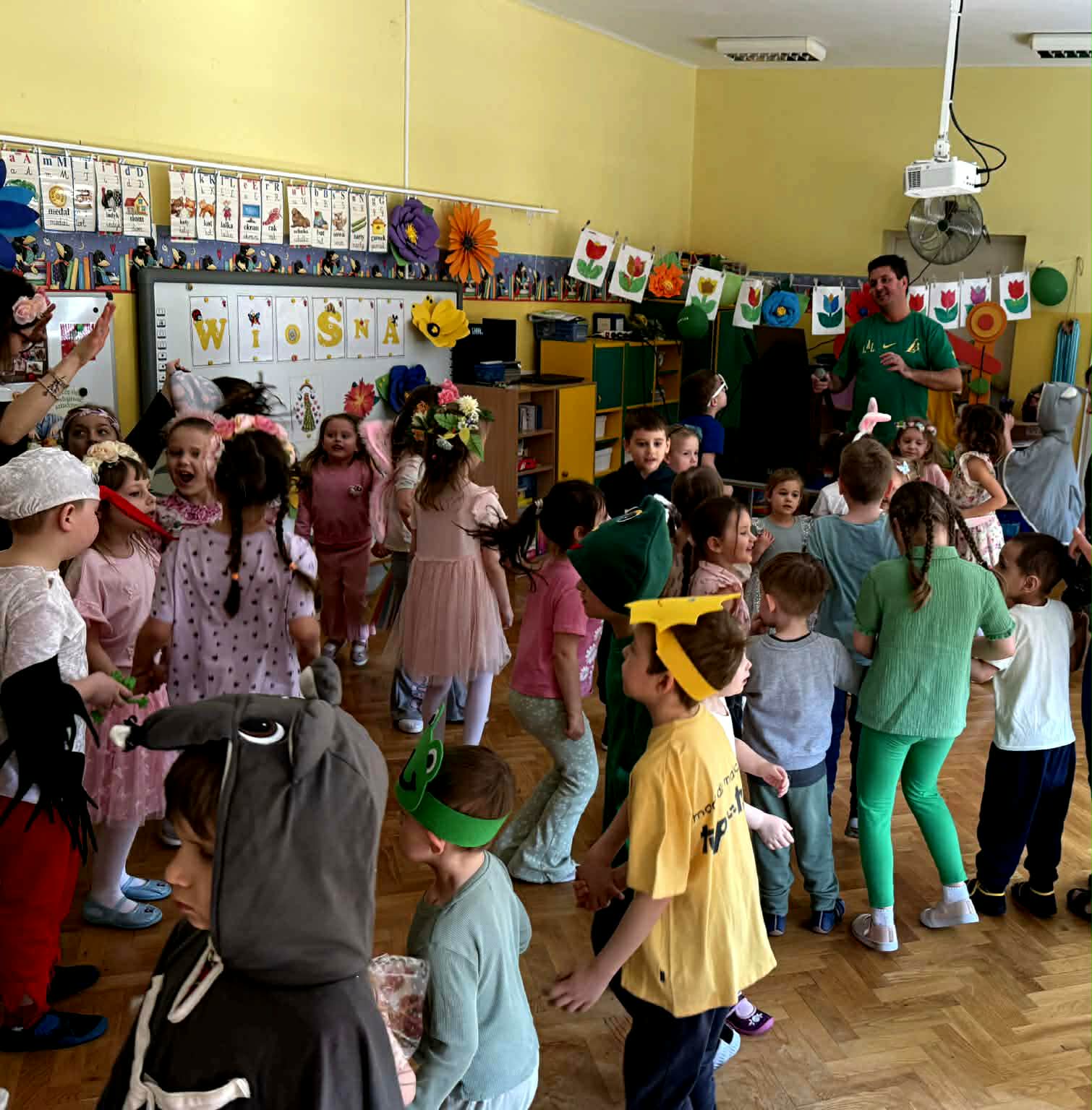 z radością informujemy, że w naszym przedszkolu odbył się Bal Wiosny, który dostarczył dzieciom wielu pozytywnych emocji i niezapomnianych wrażeń. Dzieci przyszły w pięknych, kolorowych strojach nawiązujących do wiosny – nie zabrakło kwiatów, motylków, pszczółek i innych wiosennych postaci. Podczas balu przedszkolaki brały udział w licznych zabawach muzyczno-ruchowych, tańcach oraz konkursach. Wspólnie stworzyliśmy radosną, pełną uśmiechu atmosferę, witając wiosnę .