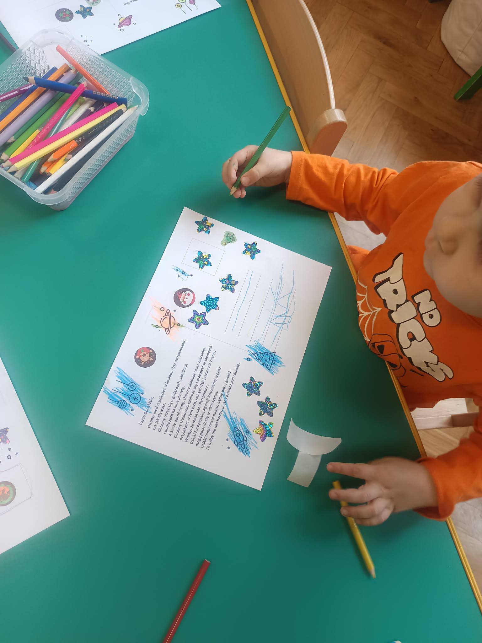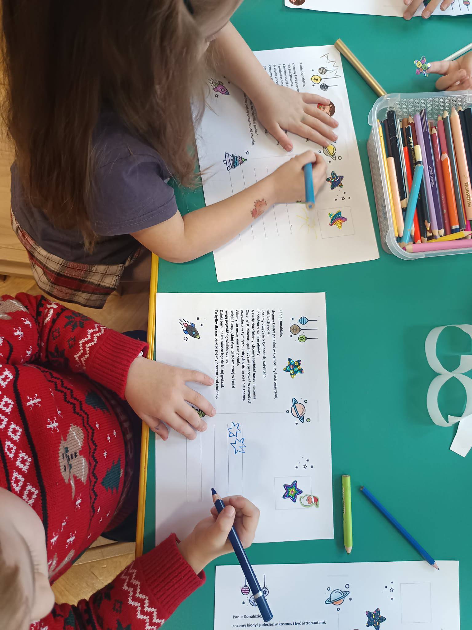dziś Nasze Przedszkolaki wraz z kadrą Naszego Przedszkola przygotowały kartki świąteczne dotyczące inicjatywy naszego miasta ukierunkowanej na wspólne wparcie i promocję Łodzi jako najwłaściwszej lokalizacji dla siedziby Centrum Europejskiej Agencji Kosmicznej. Oto efekty naszej pracy.