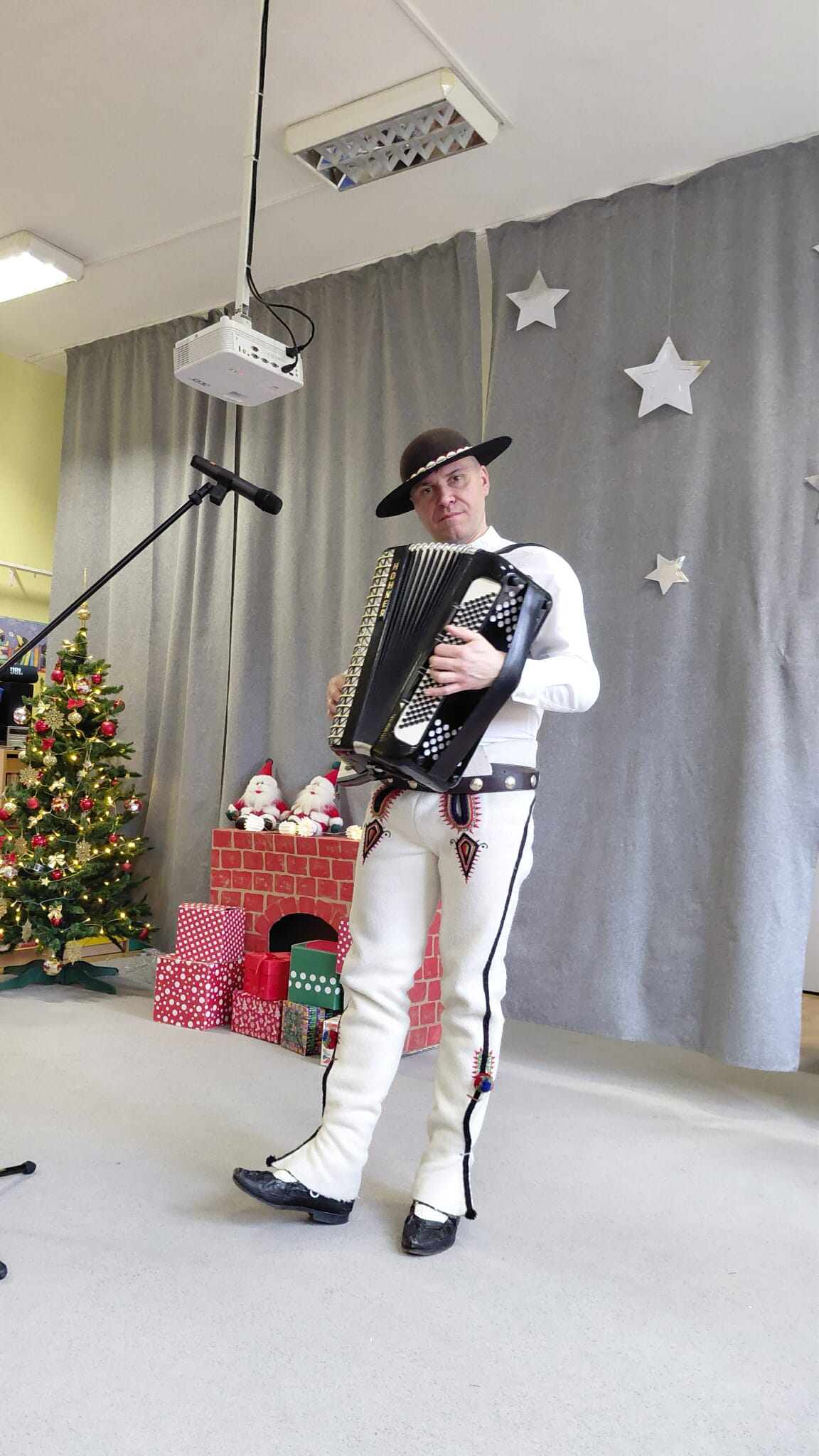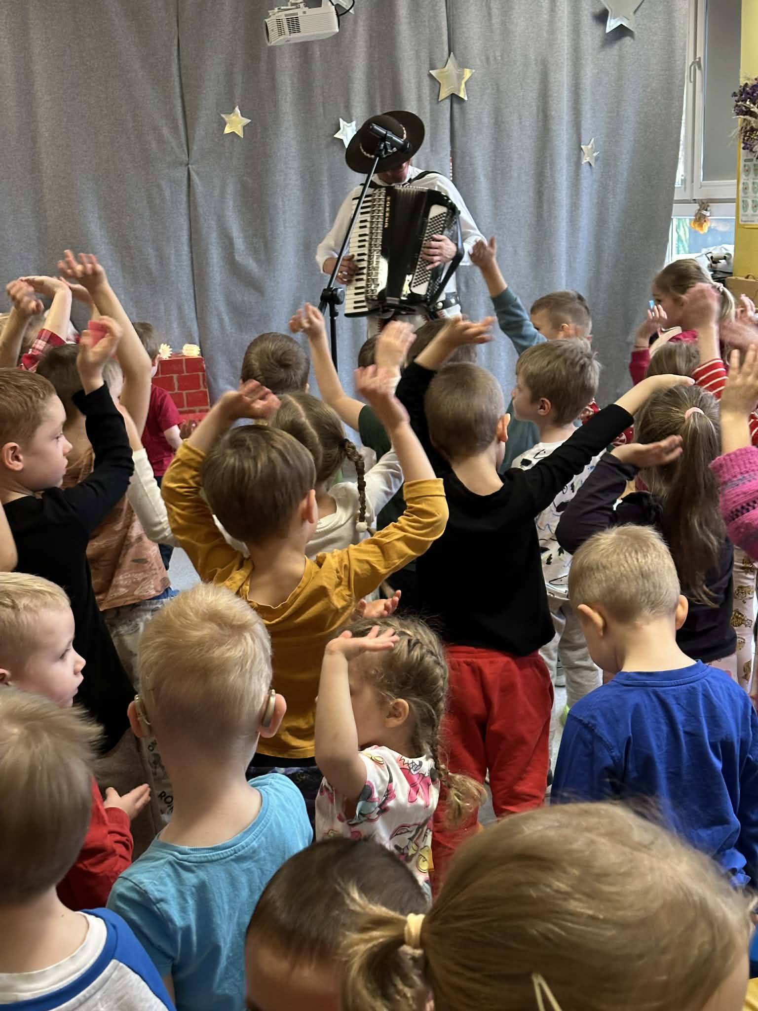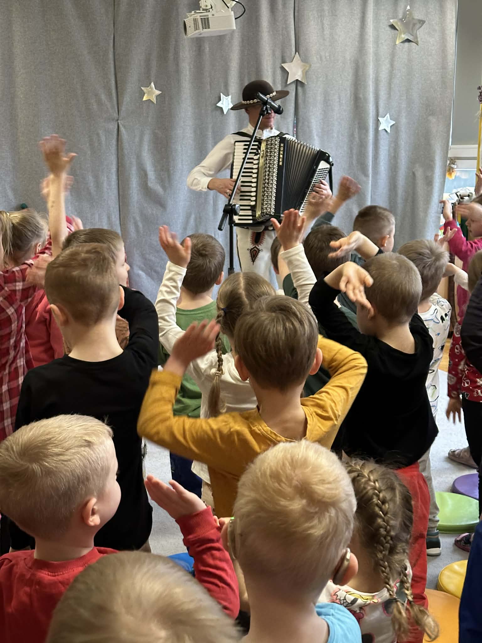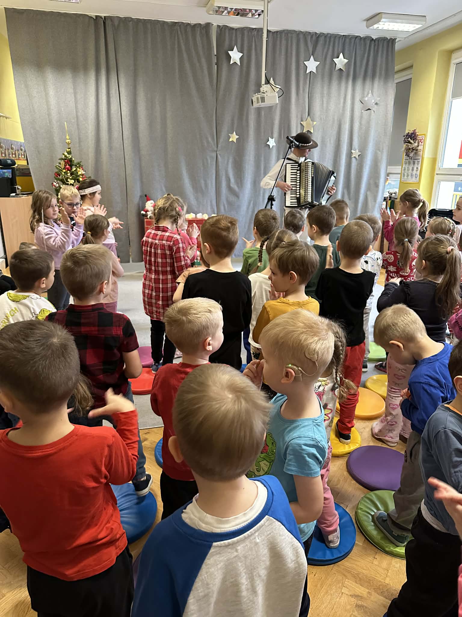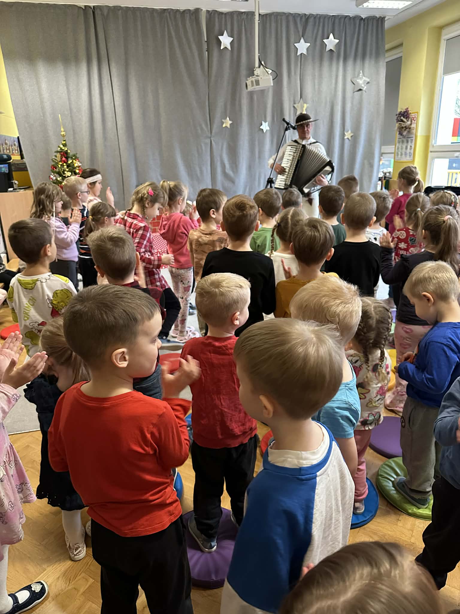 dziś uczestniczyliśmy w niezwykłym spotkaniu z góralem Szczepanem z kapeli góralskiej Góralska Hora, grającym na wielu instrumentach polskie kolędy.