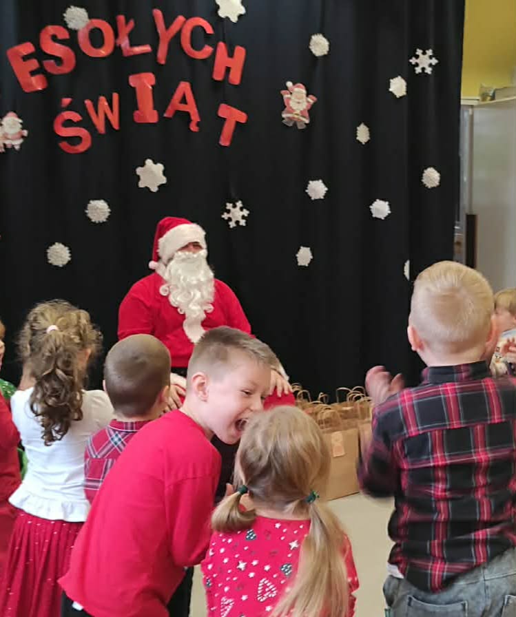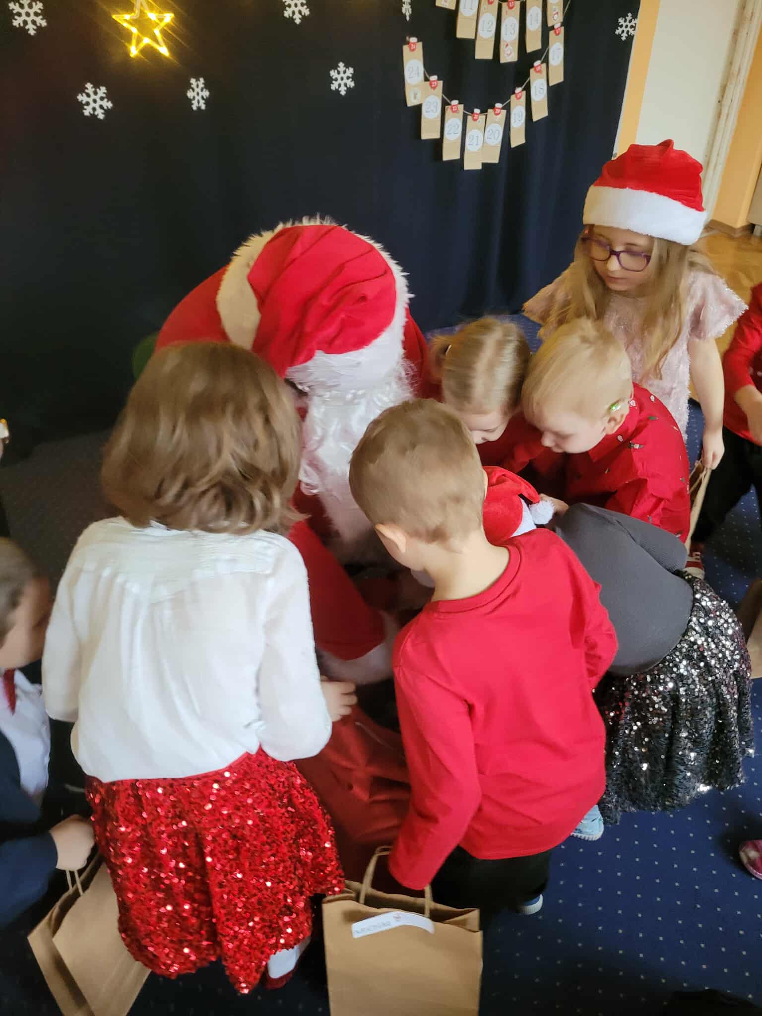 dziś w Naszym Przedszkolu wrażeń co niemiara, po przystrojeniu piernikowej choinki, Nasze Przedszkolaki miały ogromna przyjemność uczestniczenia w spotkaniu z Mikołajem. W każdej z grup, Dzieci powitały Mikołaja piosenkami, wierszykami i tańcami, następnie wszystkie otrzymały prezenty, które Mikołaj każdemu wręczał indywidualnie. Tak miłe spotkanie zakończone zostało wspólnymi rozmowami Mikołaja z dziećmi i obietnicami, iż wszyscy będziemy grzeczni, życzliwi i uprzejmi dla siebie.
